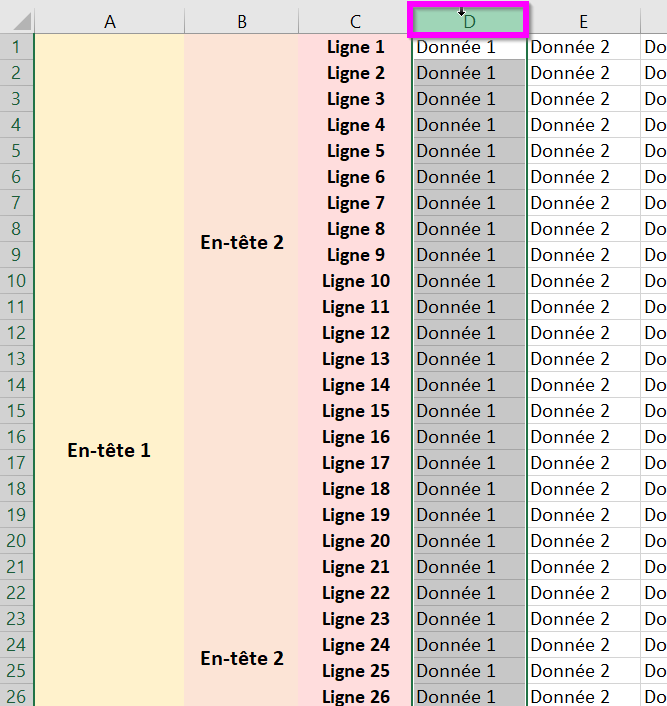 Nous avons ici cliqué sur la 4ème colonne (position encadrée en rose flashy sur l’image ci-dessus), qui correspond en fait à la première colonne ne correspondant pas à une en-tête de ligne.